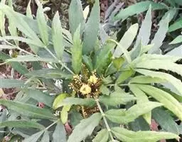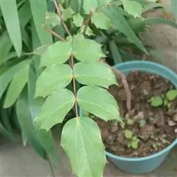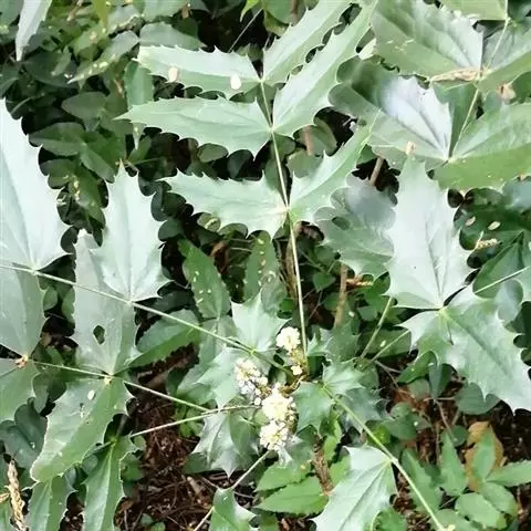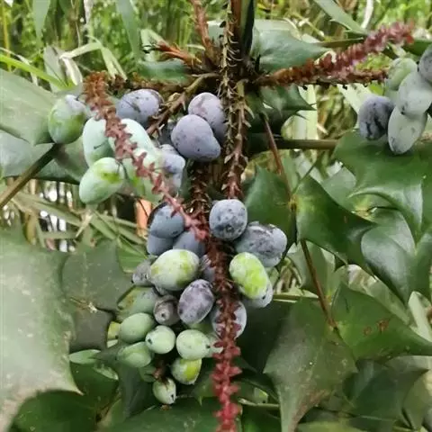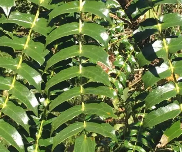 常绿灌木,植株高1-7米。叶长圆状椭圆形,长15-42厘米,宽8-15厘米,具12-20对无柄小叶,最下一对小叶距叶柄基部0.5-1厘米,上面暗绿色,背面淡黄绿色,叶脉微显或不显,叶轴直径2-3毫米,节间长1.5-5厘米,上部节间较短;最下部小叶卵形至近圆形,长1.5-3厘米,宽1-1.5厘米,其余小叶卵状披针形或披针形,长2-10厘米,宽1-2.5厘米,基部圆形,叶缘每边具2-9刺锯齿,先端骤尖至渐尖;顶生小叶长4-6.5厘米,宽0.9-1.5厘米,小叶柄长0.5-1厘米,有时无柄。