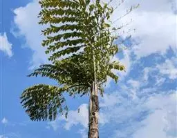 酒椰,茎直立,中等乔木状,高达5-10米。叶为羽状全裂,全长12-13米;羽片线形,长1.2-2米…