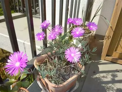 美丽日中花以观花为主。该种花大、色泽艳丽、繁茂,在匍匐平 伸的枝条衬托下,更显娇柔艳丽。常置放于室内,阳台,走廊盆栽或吊盆欣赏,为一种理想的盆栽多肉观花植物。
