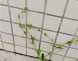 多年生草本。茎基粗壮,木质化,顶部具有宿存的卵状披针形鳞片,鳞片长3-4毫米。茎数条并生,长7-15(20)厘米,上升,不分枝,基部常疏生棕褐色长柔毛,上部疏生白色短柔毛或无毛。叶互生,由茎下部的叶至上部的叶渐次增大,花下的4或5枚叶子聚集而呈轮生状;叶片菱形、近圆形或匙形,长5-7毫米,有时更长,长稍大于宽,两面生伏毛,上面疏而短,下面较密而长,边缘反卷,全缘或有波状齿,顶端钝或急尖,基部突然变狭成柄,柄长2-4毫米。