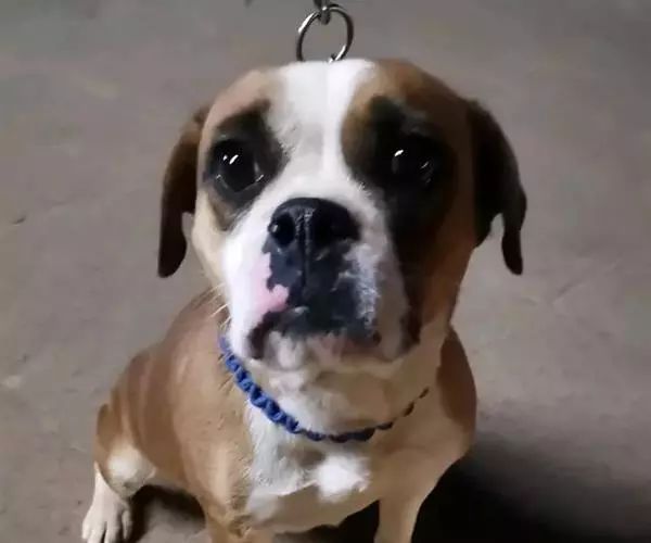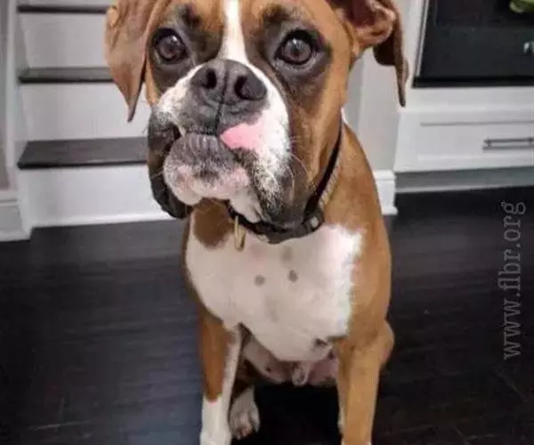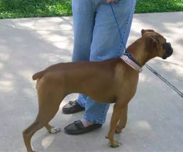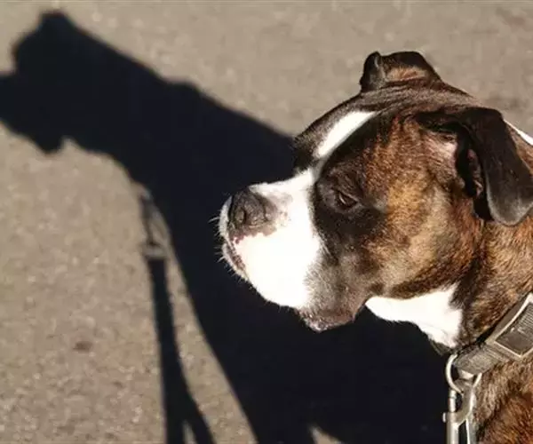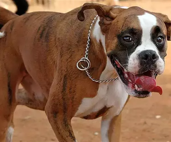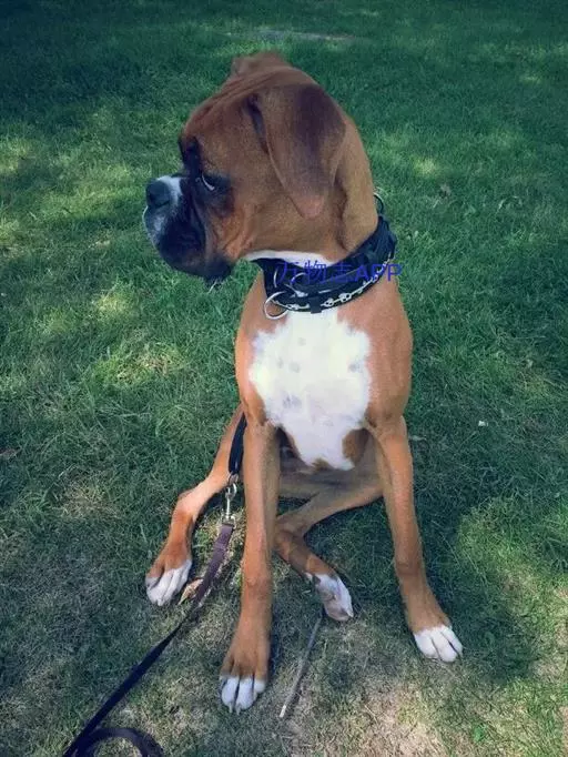 拳师犬,原产地德国,体形外貌漂亮强健。头和身体很相称,鼻大而黑。耳生长位置较高,常人工切去耳尖。眼黑色。颈圆柱形很强壮,富有肌肉,无下垂皮肤。躯体呈正方形,尾巴人工切除(欧洲等国,人性化开始留尾,留耳),尾短,始终高举。前肢直立、平行。忠诚,不记仇。尤其对儿童富有感情,易训练,可用作警犬、护卫犬、个人警卫犬,也可用于导盲犬。由于其服从性好,也是一个很好的伴侣犬。