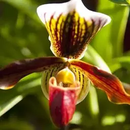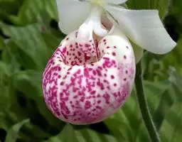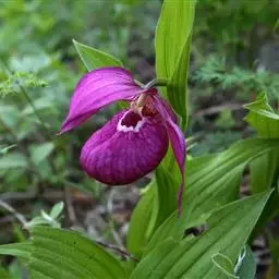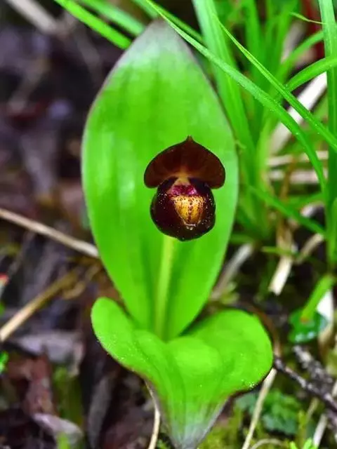 大花杓兰因其形状酷似一个口小肚大的囊袋,又名“大口袋兰”。花体呈紫红色,花朵直径5厘米至6厘米,…