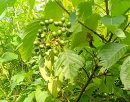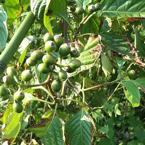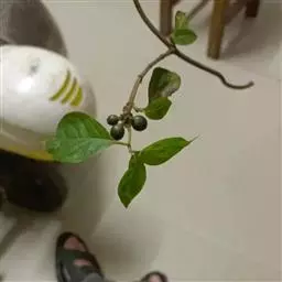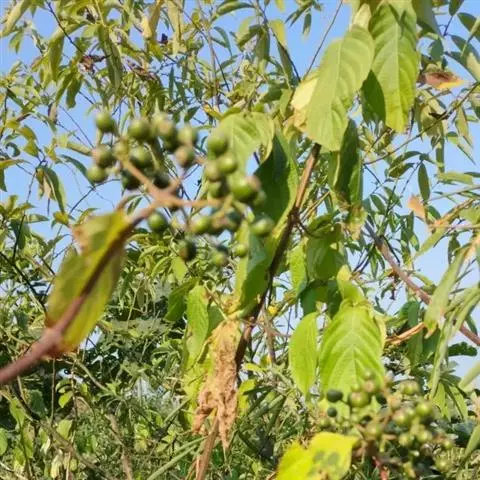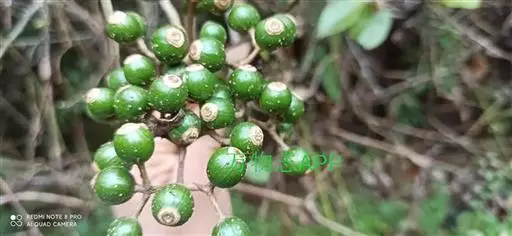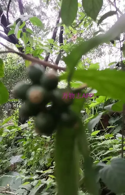 浆果近球形,长8-10mm,直径6-7.5mm,疏被柔毛,顶部有萼檐脱落后的环状疤痕,干时黑色,果柄长4-5mm,疏被毛。花期6-7月。