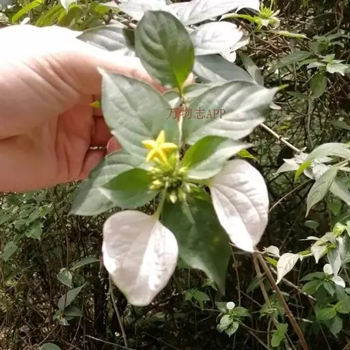 粉纸扇,茜草科玉叶金花属植物,半常绿灌木,株高1~3 m。叶对生,长椭圆形,顶端浙尖,基部楔形,全缘。…