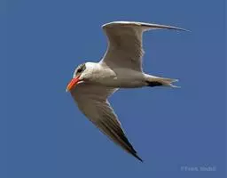 红嘴巨鸥,大型水鸟,体长47~55厘米。夏羽前额、头顶、枕和冠羽黑色。后颈、尾上覆羽和尾白色,…