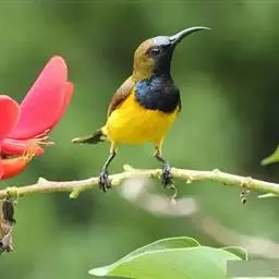 黄腹花蜜鸟是雀形目太阳鸟科花蜜鸟属鸟类。体型较小、喙略短而弯、腹部黄色。…