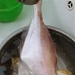 将鱼捕后,把鱼皮剥下,晒干备用。