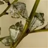 症状为病植株的叶片急剧失水萎蔫,不脱落而悬挂于树枝上,呈典型的青枯状,茎木质部变成黑褐色,枝干外面有时出现褐色至黑色的条斑,植株根部腐烂,皮层脱落,木质部和髓部坏死。病株从发病到整株枯死约2-3周,病菌传播速度快。当年栽植的幼树最易感病,2-3年生的植株次之,随着树龄的增加,发病机率逐渐降低。最有效的方法是选育抗病品种,使用经过严格的抗病力测定、抗病力强的品种;培育健康壮苗,把好苗木检疫关,不用感病苗木造林;避免使用前作或间种过花生、烟草、茄子、辣椒、西瓜等易感青枯病作物的土地育苗或造林,避免使用未经腐熟的垃圾肥或其他有机肥;对已发生青枯病的林地,应及时挖除、烧毁病株,用生石灰或5%波尔多液消毒土壤。