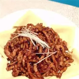 10、炒匀后盛盘即可。此菜应适当多加点糖,稍带甜口,味道更佳。
