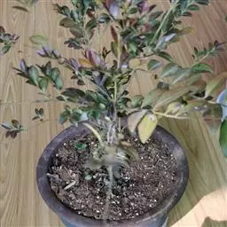 多枝常绿矮灌木,幼枝绿色,老时深褐色,树干黑褐色。嫩枝、嫩叶和冬芽有锈色柔毛。新生嫩叶褐红色。