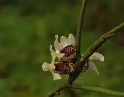 指甲兰是兰科指甲兰属植物。其茎粗壮;叶带状;总状花序疏生数朵花;萼片和花瓣淡白色,…