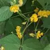 赤豆(学名:Vigna angularis (Willd.) Ohwi et Ohashi):一年生直立或缠绕草本,高可达90厘米,羽状复叶;托叶盾状着生,箭头形,小叶卵形至菱状卵形,全缘或浅三裂,两面均稍被疏长毛。花黄色,花梗极短;小苞片披针形,花萼钟状,旗瓣扁圆形或近肾形,翼瓣比龙骨瓣宽,子房线形,花柱弯曲,荚果圆柱状,种子通常暗红色或其他颜色,长圆形,种脐不凹陷。花期夏季,9-10月结果。