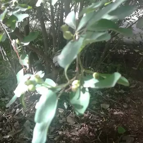 落叶灌木,高达3-5米,枝条细弱开展;小枝圆柱形,微有稜角,无毛,幼时红褐色,老时褐色;冬芽三角卵形,先端钝,平滑无毛,暗紫红色。叶片椭圆形,长椭圆形至长圆倒卵形,长3.5-6.5厘米,宽1.5-3.5厘米,先端圆钝或急尖稀有突尖,基部楔形或宽楔形,全缘,稀中部以上有钝锯齿,上下两面均无毛;叶柄短,长5-15毫米,或近于无柄;不具托叶。