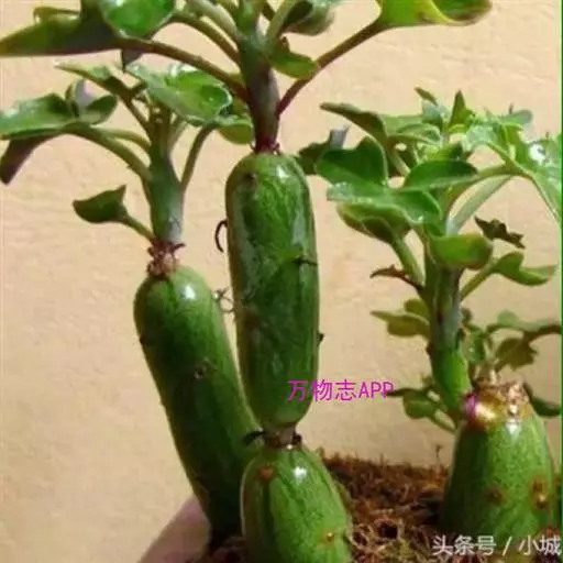 多年生落叶多浆植物。枝伸展。株高30-60cm,冠径不定。茎短圆柱状,匍匐茎上具多数短匍枝,粉蓝色,具灰色斑点,具节。叶扁平,圆形或卵形,3~5裂,叶柄与叶片等长或更长。带锦品种(Senecio articulatus ‘Variegatus’)叶片具乳白色和粉红色斑点(叶片夏季可能呈蓝绿色),不带锦品种(Senecio articulatus)植株通体呈蓝绿或翠绿。头状花序稍扁平,花小,杯状,黄色,秋季至春季开放。 七宝树 无锦品种