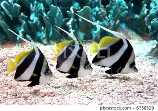 马夫鱼(学名:Heniochus acuminatus)。成鱼体甚侧扁,背缘高而隆起,略呈三角形。背鳍鳍棘11根,第四鳍棘延长呈鞭状,鳍膜亦随之延长。口小。牙细尖呈刚毛状。体侧有2条宽横黑带间杂宽阔白色肤纹。侧线完全。尾鳍近截形。身体,尾鳍及背鳍呈现亮黄。此鱼广泛分布于印度洋与太平洋,中国只产于南海,是海南岛沿海水域的常见物种。为暖水性小型珊瑚礁鱼,一般体长100毫米左右,最大可达200毫米以上。