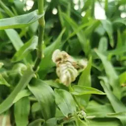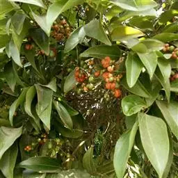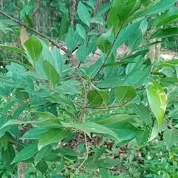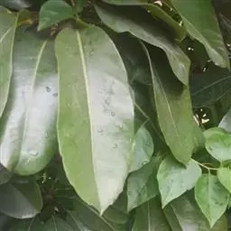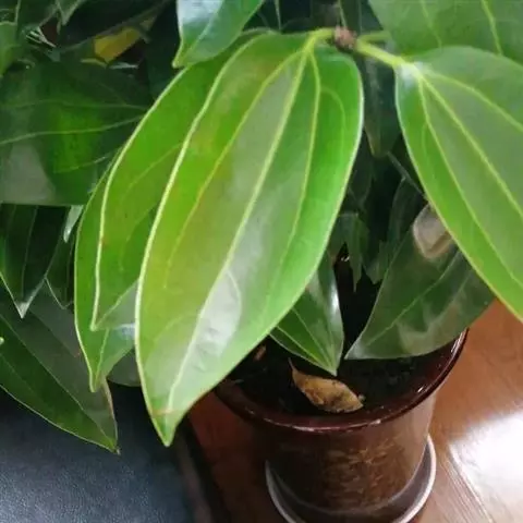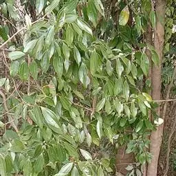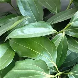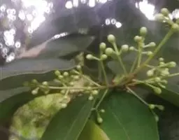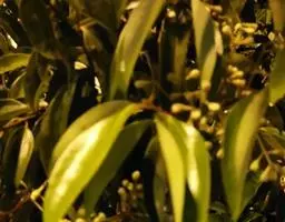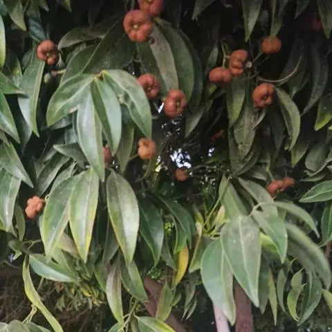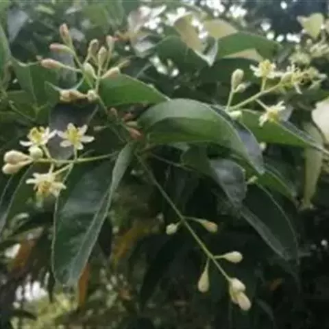 3、细叶香桂,常绿高大乔木。树皮灰色,小枝密生绢状毛。叶在新枝对生,在老枝互生,革质,卵状椭圆形至披针形,长4-14cm,宽1-6cm,先端长渐尖,基部楔形,全缘,上面绿色,有光泽,下面密生绢状短柔毛,具离基3出脉,在背面显着隆起。圆锥花序腋生;总花梗和花梗密生白色短柔毛;花淡黄色,花被6裂,基部筒状;雄蕊、雌蕊与前种相似。浆果椭圆形,基部具宿存萼筒,全缘。花期5-6月。果期6-12月。