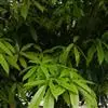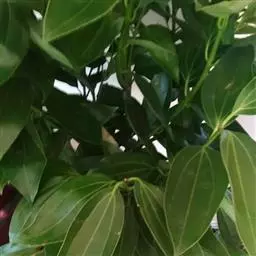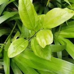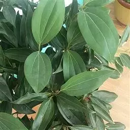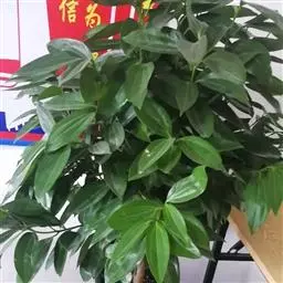 2、阴香。常绿乔木,高达20m。小枝赤褐色,无毛。叶近于对生或散生,革质,卵形或长椭圆形,长6-10cm,宽2-4cm,先端短渐尖,基部楔形至近圆形,全缘;上面绿色,有光泽,下面粉绿色,两面均无毛,具离基3出脉,脉腋内无隆起的腺体;叶柄长8-12mm。圆锥花序顶生或腋生;花小,绿白色,花被6,基部略合生,长4-5mm,两面均被柔毛;能育雄蕊9,排成3轮,外面2轮花药内向,第3轮花药外向,花药均为卵形,4室,瓣裂,花丝短,最内尚有1轮退化雄蕊;雌蕊1,子房上位,1室,1胚珠,花柱细,柱头小。浆果核果状,卵形,长不及1cm,直径约5mm,基部具肥厚杯状的宿存花被,其先端具6截形短裂片。花期3-4月。果期4-10月。
