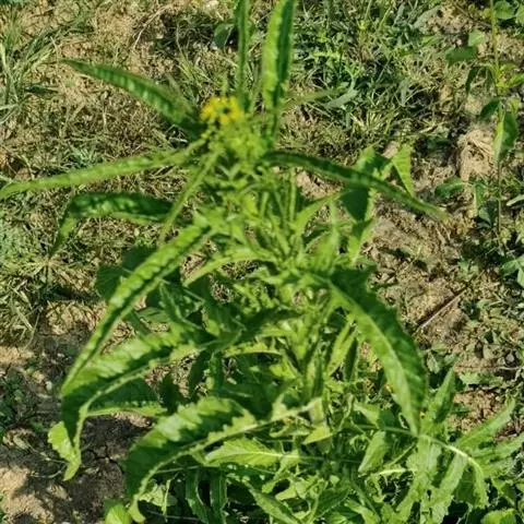 一或二年生直立粗壮草本,高20-80厘米,植株被白色硬毛或近无毛。茎单一,基部木质化,下部被白色长毛,上部近无毛分枝或不分枝。茎下部叶具柄,上部叶无柄,叶片长圆形至倒卵状披针形。长5-15厘米,宽1-2.5厘米,基部渐狭,下延成短耳状而半抱茎,边缘具不整齐粗齿,两面被疏毛,尤以叶脉为显。总状花序多数,呈圆锥花序式排列,果期伸长。花小,黄色,具细梗,长4-5毫米;萼片4,长卵形,长约1.5毫米,开展,基部等大,边缘膜质;花瓣4,倒卵形,与萼片等长成稍短,基部渐狭成短爪;雄蕊 6,4强或近于等长。短角果实近球形,径约2毫米,果瓣隆起,平滑无毛,有不明显网纹,顶端具宿存短花柱;果梗纤细,呈水平开展或稍向下弯,长4-6毫米。种子多数,淡褐色,极细小,扁卵形,一端微凹;子叶缘倚胚根。花期4-6月,果期7-9月。
