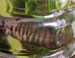 明显的五道黑色竖纹 也称赤鲈、五道黑,隶属于鲈形目鲈亚日鲈科鲈属。河鲈体侧扁,呈长椭圆状,头尖、小,略呈三角形;体呈棕褐色,背部颜色较深,体侧从第一背鳍起点至第二背鳍末有5条较宽的黑斑,腹部颜色灰白。