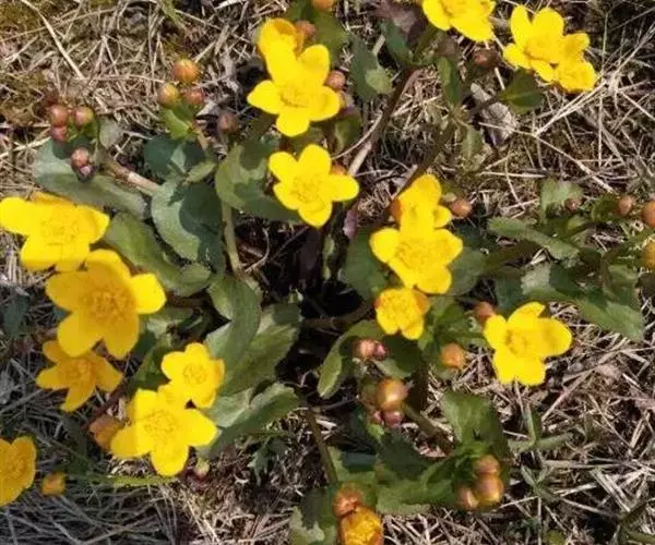 驴蹄草(学名:Caltha palustris L.)是毛茛科,驴蹄草属多年生草本植物,全部无毛,有多数肉质须根。茎高可达48厘米,实心,具细纵沟,基生叶有长柄;叶片圆形,圆肾形或心形,顶端圆形,基部深心形或基部二裂片互相覆压,边缘全小齿;聚伞花序;苞片三角状心形,边缘牙齿;萼片黄色,倒卵形或狭倒卵形,花药长圆形,花丝狭线形;种子狭卵球形,黑色,5-9月开花,6月开始结果。