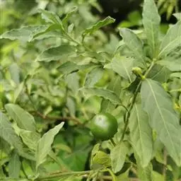 珊瑚豆,是茄科茄属的常绿灌木。叶双生,大小不等,椭圆状披针形,先端钝至短尖,叶面无毛,叶背有簇茸毛,…