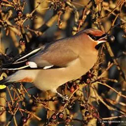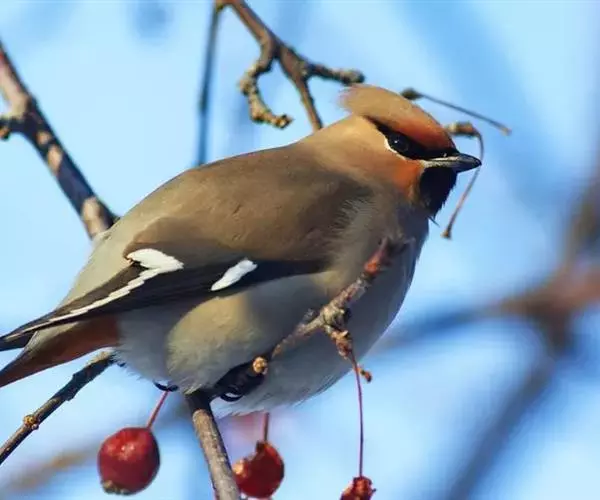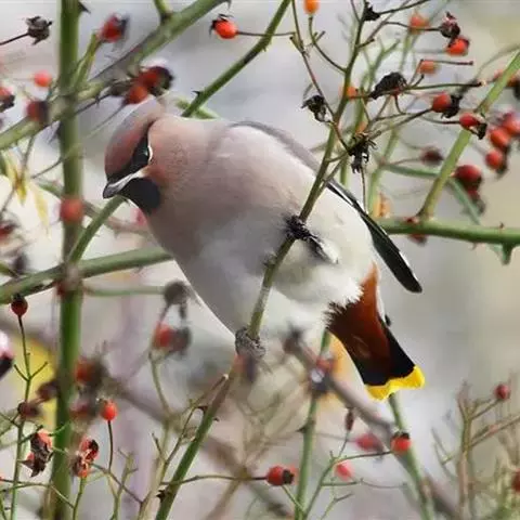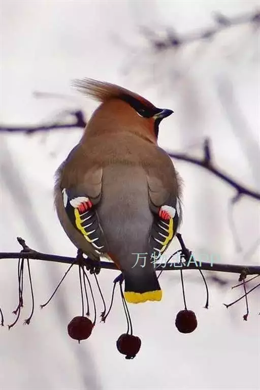 太平鸟属雀形目,太平鸟科的鸟类。太平鸟通体灰褐色,具羽冠;颏、喉黑色,尾羽先端黄色;虹膜暗红色;嘴黑;脚、爪黑色。在国内为冬候鸟,在东北、内蒙古及华北一带均可见到;新疆;四川、福建等地偶尔遇见。太平鸟为我国的旅鸟及冬候鸟,集结成大群在辽宁以南西至新疆、南至福建、台湾的广大地区越冬。秋季迁来的时间较晚,为各种旅鸟的后队;一般最早为11月初,迟来者可在次年1月,个别年份可在9月中旬出现。共分化为两个亚种,中国有一个。羽色绚丽,常被饲为笼鸟,供观赏用。