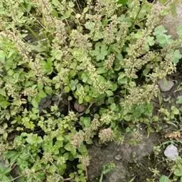 风轮菜 性状鉴别 茎呈四方柱形,直径2-5mm,长70-100cm,节间长3-8cm;表面棕红色或棕褐色,具细纵条纹,密被柔毛,四棱处尤多。叶对生,有柄,多卷缩或破碎,完整者展平后呈卵圆形,长1-5cm,宽0.8-3cm,边缘具锯齿,上面褐绿色,下面灰绿色,均被柔毛。轮伞花序具残存的花萼,外被毛茸。小坚果倒卵形,黄棕色。全体质脆,易折断与破碎,茎断面淡黄白色,中空。气香,味微辛。