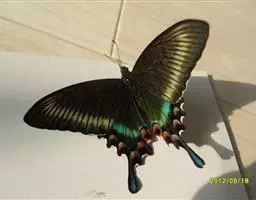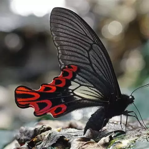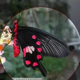 曙凤蝶是凤蝶科、曙凤蝶属蝴蝶。体背黑色,头、颈、胸侧及腹侧具红色鳞毛。雌、雄异型。雄蝶翅黑绒色,…