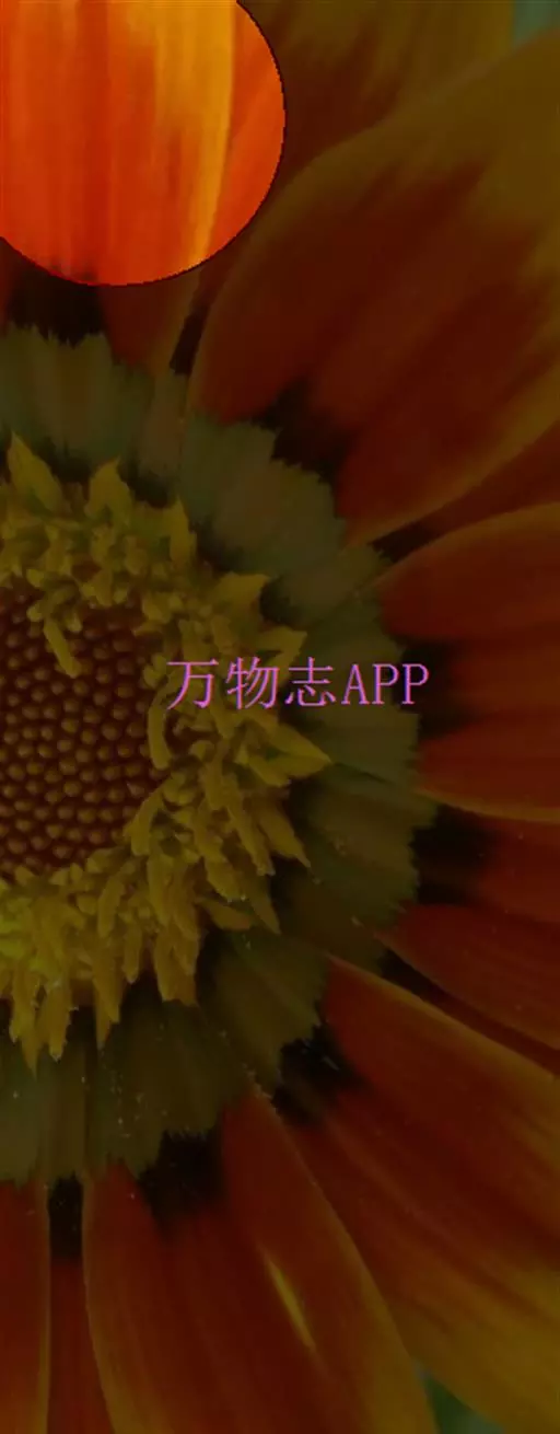 头状花序长13-15毫米,宽23-35 (42) 毫米,单生于茎顶端;总苞半球形,长7-9毫米,宽15-22毫米,总苞片3层,近等长,稍长于花盘,线状披针形,长7-9毫米,宽约1毫米,顶端尖或渐尖,背面被密开展的硬长节毛;外围的雌花舌状,3层,长7.8-12毫米,管部长2.5毫米,被疏贴微毛,舌片开展,平,桔红色,或黄色至红褐色,宽1-1.4毫米,顶端具2-3个细齿;中尖的两性花管状,黄色,长4-5.5毫米,管部长约1.5毫米,檐部窄漏斗形,上半部被疏微贴毛,裂片无毛;花药伸出花冠。