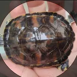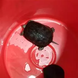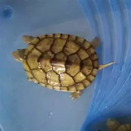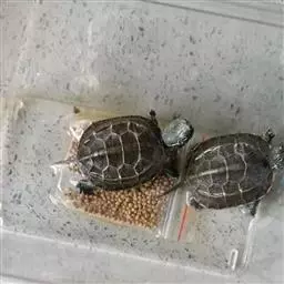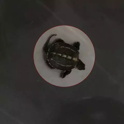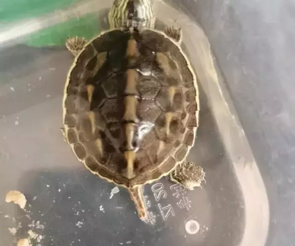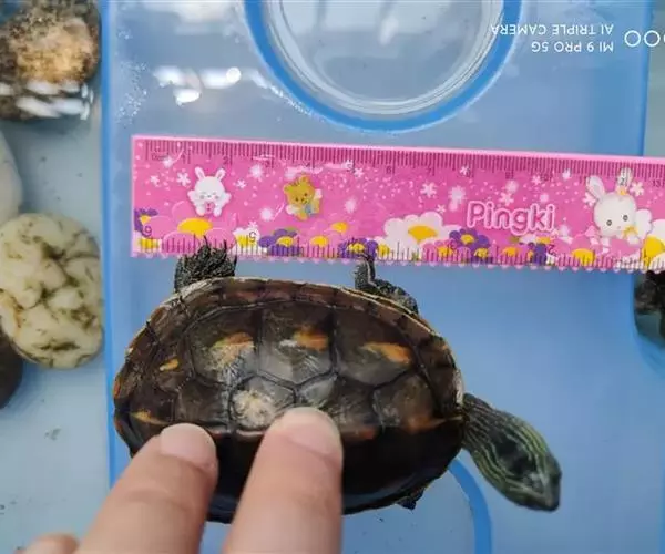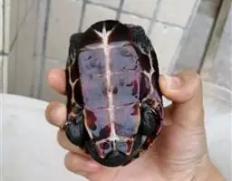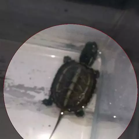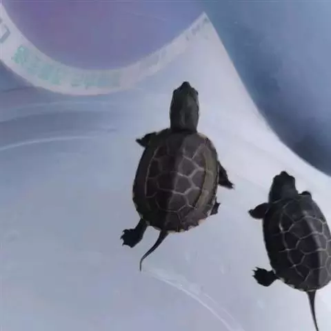 刚孵出的稚龟重4.1-6.9克,背甲长26-35毫米,宽22-27毫米。稚龟出壳后,不应立即取出,让龟在孵化箱内1-2天后,将腹部肚脐完全收缩的龟拿出,放于盆中饲养,水位0.5-1.0厘米。肚脐未完全收缩的则继续留在孵化箱中静养。龟开食后移入幼龟池,水深约50厘米,池内放养浮萍,投喂碎肉、鱼肉等动物性饵料,饵料放置在斜坡上。