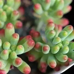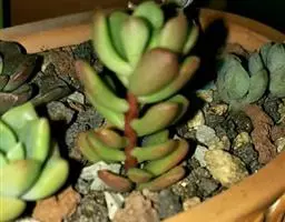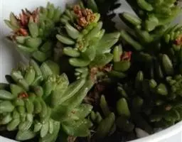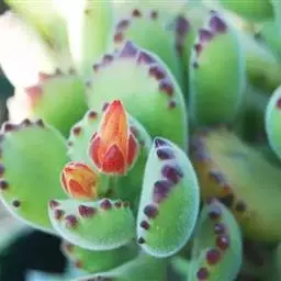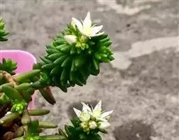 松虫又名天锦星、金钱章,为多年生草本,叶片紧密排列,叶面有淡绿色斑点,植株有粗大的木质茎,容易长侧枝,群生的松虫非常漂亮,花开不太好看,穗状倒钟型小花,五个花瓣,异株授粉。