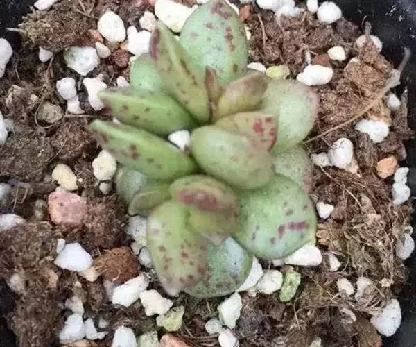 中文名:松虫松虫又名天锦星、金钱章,为多年生草本,叶片紧密排列,叶面有淡绿色斑点。松虫无明显休眠期,可以全日照。夏天的时候通风遮阳,每个月3到4次水,少量在盆边给水慢慢度过盛夏,维持植株根系不会因为过度干燥而干枯就可以。冬天温度低于3度就要逐渐少水,0度以下保持盆土干燥,尽量保持不低于零下3度,冬天尽量少点水,开春给水要循序渐进否则可能出现烂根。松虫的繁殖方法有播种和分株、砍头、叶插。