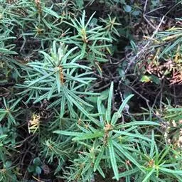 常绿垫状平卧半灌木,高3-6厘米,多分枝,主茎极短,主根圆柱形,粗壮。叶密生于茎上,革质,匙状椭圆形或匙状长圆形,长3-4(-5)毫米,宽1.5-2.5毫米,先端圆,基部以宽翅下延于叶柄成鞘状,全缘,反卷,上面无气孔,有细乳头状突起,常具皱纹,深绿色,干燥后黄绿色,通常无光泽;叶柄具窄翅,下部膨大,包茎,长2-5毫米,叶片脱落后,叶柄通常宿存于老枝上。