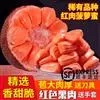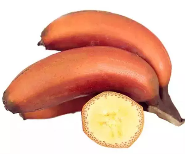 红皮香蕉20世纪70。年代从东南亚引入,属AAA群红绿蕉品种。假茎高3~4米,茎周长67~87厘米,除叶面呈绿色外,假茎、叶脉和中脉均呈暗紫红色。梳数、果数少,果指长17~20.5厘米,果皮暗紫红色,后期带绿条纹,果肉蛋黄色,肉质软滑,有特殊的兰花香味,果实总糖含量为20%~21%。红皮香蕉的产量低,株产10~20千克。该品种易突变为绿蕉,生长期较长,在15个月以上,抗病、抗寒力弱。红皮香蕉虽然缺点多,但由于其果皮为红色,有喜气的意思,不乏市场需求,已有商业化栽培。2003年3月份通过福建省农作物品种审定委员会审定 。
