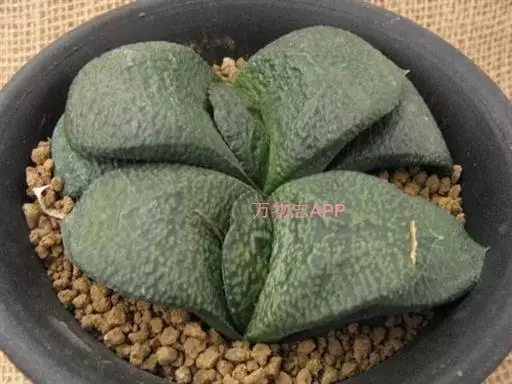 卧牛(Gasteria armstrongii Schönland) 是阿福花科鲨鱼掌属的多肉植物,也是鲨鱼掌属中最具代表性的类群之一。原产地位于南非开普省。叶片厚且质硬,排列紧密,叶面具有许多小疣突,叶色暗绿,生长缓慢,长年摆放形态变化不大。其园艺品种如达摩卧牛、绿星卧牛、卧象等被现已引入我国。