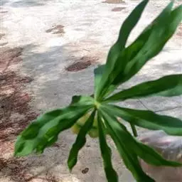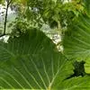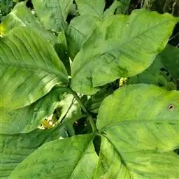 叶片呈两型性,幼叶为单叶,箭形或戟形;老叶成5-9裂的掌状叶,中间一片叶大型, 叶基裂片两侧常着生小型耳状叶片。初生叶色淡,老叶呈深绿色,且叶质加厚。合果芋的叶的颜色在地上的时候是白色的,当它攀附到树上的时候,它的颜色就会变深变绿。叶的形状也会随着改变,在地上的时候,叶的形状是盾形的,随着植株攀附到树上,叶的分裂也会随着增加,它可以分裂到七八片之多,叶的颜色变深变绿,在树干上的它新发出来的小叶颜色也没有发白,小叶分裂的很多,而且在同一植株上,树干基部的合果芋的叶片不分裂,在树干中部的叶片才开始分裂。这种同一植株上有不同叶形的现象叫做异形叶性。异形叶性的发生,有两种情况:一种是叶因枝的老幼不同而叶形各异,另一种是由于外界环境的影响而引起异形叶性。