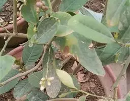 柑橘疮痂病主要为害叶片、新梢和果实,引起落叶、落果。未落病果小而畸形,品质变劣,受害新梢生长不良。本病只能侵染叶、梢、果地幼嫩组织,受害叶片初现水浸状小点,后逐渐扩大,呈蜡黄色至黄褐色,直径0.3~2.0mm,木栓化。