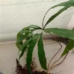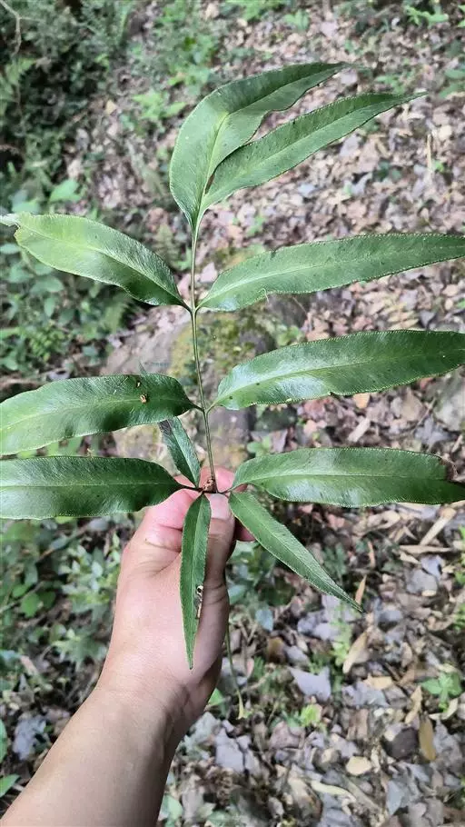 又名风丫草。多年生草本,植株高60-120厘米。叶柄长30-50厘米,粗3-5毫米,禾秆色或栗褐色,基部以上光滑;叶片和叶柄等长或稍长,宽20-30厘米,长圆三角形,二回羽状;羽片通常,对(少则3对),基部一对最大,长20-35厘米,宽10-15厘米,卵圆三角形,柄长1-2厘米,羽状(偶有二叉);侧生小羽片1-3对,长10-15厘米,宽1.5-2.5厘米,披针形,有柄或向上的无柄,顶生小羽片远较侧生的为大,长20-28厘米,宽2.5-4厘米,阔披针形,长渐尖头,通常向基部略变狭,基部为不对称的楔形或叉裂;第二对羽片三出、二叉或从这对起向上均为单一,但略渐变小,和其下羽片的顶生小羽片同形;顶羽片较其下的为大,有长柄;羽片和小羽片边缘有向前伸的疏矮齿。叶脉网状,在羽轴两侧形成2-3行狭长网眼,网眼外的小脉分离,小脉顶端有纺锤形水囊,不到锯齿基部。叶干后纸质,上面暗绿色,下面淡绿色,两面无毛。孢子囊群沿叶脉分布,几达叶边。