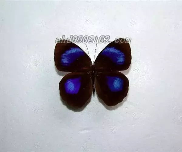 紫斑环蝶(Thaumantis diores)是我国云南常见蝶类,其翅膀表面分布着两种类型的鳞片,呈覆瓦状排列,均布于整个翅膀表面。 紫斑环蝶翅展80~90mm,前翅三角形,外缘弧状,后翅近圆形,翅面深褐色,前后翅中室后方有蓝色斑块。该种喜栖息在潮湿背阴的地方,飞行缓慢。我国广西、海南、云南、西藏等地有分布。