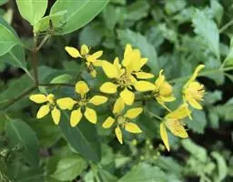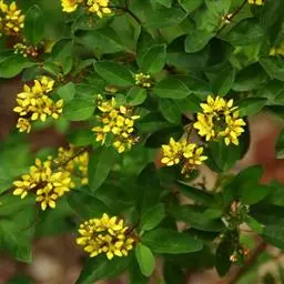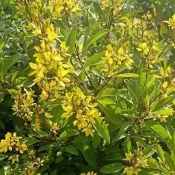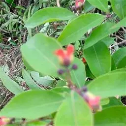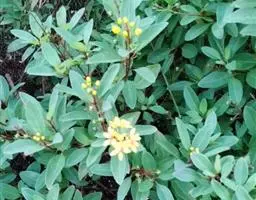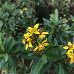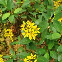 金英常绿灌木,株高约50-160厘米,嫩茎红色。叶片绿色,对生,椭圆形,先端尖,基部楔形,全缘。…