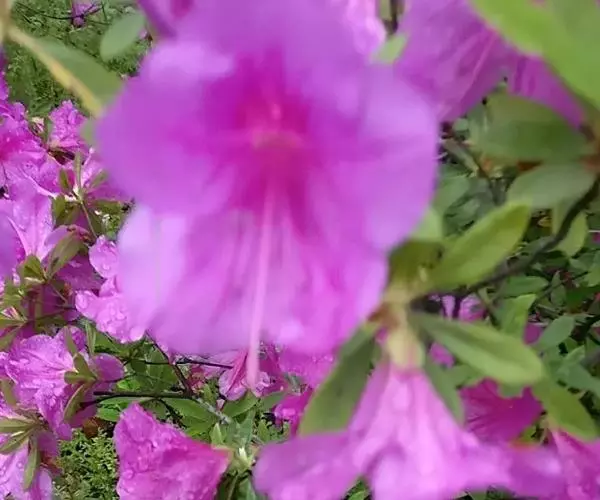 杜鹃花,又名映山红、山石榴,为常绿或平常绿灌木。相传,古有杜鹃鸟,日夜哀鸣而咯血,染红遍山的花朵,因而得名。杜鹃花一般春季开花,每簇花2-6朵,花冠漏斗形,有红、淡红、杏红、雪青、白色等,花色繁茂艳丽。生于海拔500-1200(-2500)米的山地疏灌丛或松林下,为中国中南及西南典型的酸性土指示植物,有时杜鹃花也是杜鹃属约960种植物的通称。