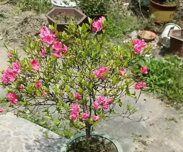 主要特性:植株低矮、枝条细软,无序发枝、横枝多。叶卵形,叶片薄、毛少、嫩绿色、有光泽。花蕾生枝端3-4个,每蕾有花1-3朵,多时4-5朵,开花繁密,真是“不见枝叶只见花”。花冠漏斗状,小型,口径2-4厘米,筒长2-3厘米,多数花萼演变成花冠、形成内外2套,称为双套、夹套。花色多有红、紫、白、粉白、嫩黄、白绿、镶边、洒锦等。有雄蕊5枚,也有雄蕊瓣化成高度重瓣花的。花期比毛鹃略早几天。7-8月老叶凋落,同时花芽形成。不耐强光,可露地种植,萌发力强,极耐修剪,花、枝、叶均纤细,是庭院绿化作色块的好材料,同时也是制作造型盆花的理想材料。