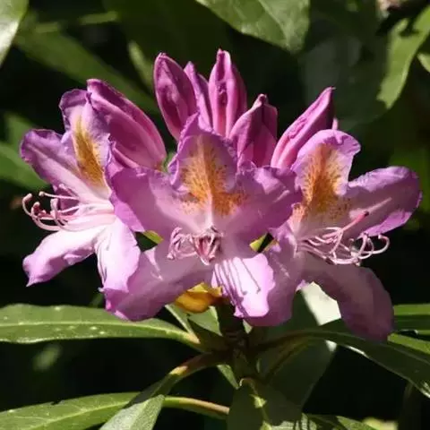 落叶杜鹃杂交品种的发展——除了明尼苏达州(美国州名)还在培育“北极光(Northern Light)”以外,侧重点已愈来愈趋向于常绿杜鹃。所谓常绿杜鹃并不是普通意义上的“常绿”。它们的叶子是二态的,简单的说,它们有两种叶子。春天的叶子在花期或花期刚过时沿枝条生长。它们在秋季凋落,一般凋落前已转为黄色。另外一些叶片在初夏生长。它们比起春天生长的叶片来得更厚、更小、更强韧,颜色也更深。它们密集于枝头。除掉像印蒂卡杜鹃(R.indicum,意译为蓝花杜鹃)可一直持续三年外,它们一般在来年春天落叶。在冬季,它们通常转为微红色。若是天气实在很冷,绝大多数就会掉落。