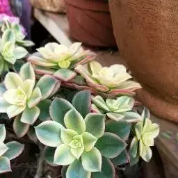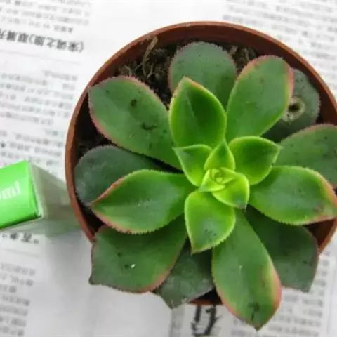 红缘莲花掌属蔷薇目、景天科植物,原产大西洋的加那利群岛。质厚,蓝绿色,被白霜,叶缘红褐色。聚伞花序,…