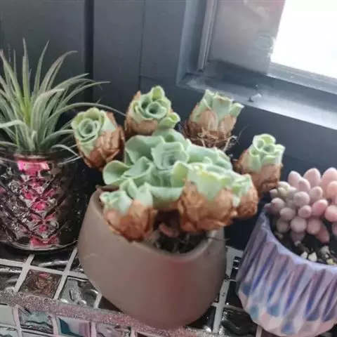 爱染锦,别名黄笠姬锦、墨染,景天科莲花掌属多肉植物,矮小灌木状植株。…
