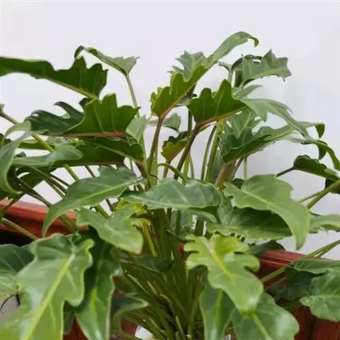 中型种,茎短,成株具气生根,叶长圆形,长约30厘米,有光泽。 金钻蔓绿绒 先端尖,革质,绿色。叶片宽,手掌形,肥厚,呈羽状深裂,有光泽;叶柄长而粗壮,气生根极发达粗壮,纷然披垂,将其布置室内,大方清雅,富热带雨林气氛。是好的观叶植物,我国中南部各省广泛栽培。耐寒又耐摆、盆栽切叶两用的国产金钻蔓绿绒金钻蔓绿绒(Philodendron’con-go’)是美国市场上很畅销的荫生盆栽观叶植物。它叶片搭配均匀、张度适中,叶质厚而翠绿,叶面有刚质亮度,每片叶子的寿命长达30个月。