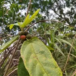 【苗药】真巴苦(融水语):全株治淋巴腺炎《桂药编》。地瓜藤,地枇杷,拦路虎,真巴苦:藤茎用于跌打损伤,腰肌劳损,风湿筋骨痛,夏季暑邪引起腹泻,痢疾,小儿形体瘦弱,食积腹痛;果实用于肺虚咳嗽,痰中带血《民族药志三》。