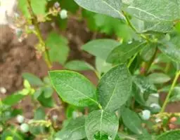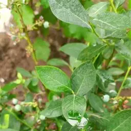 蓝莓是杜鹃花科、越橘属的落叶灌木,小枝绿色,具棱或圆柱形,通常具成行的柔毛;叶片近革质,卵形至椭圆形,…
