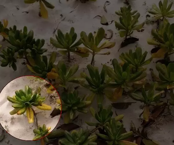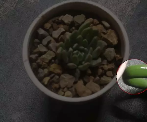 4. 八千代叶片光滑无粉,乙女心叶片有薄薄一层蜡质白色霜粉覆盖。