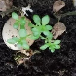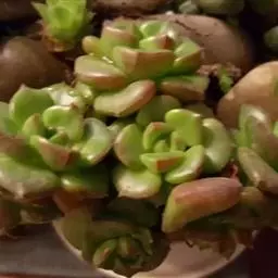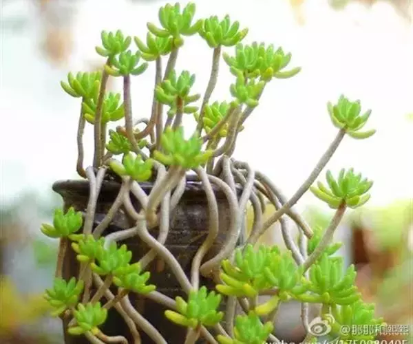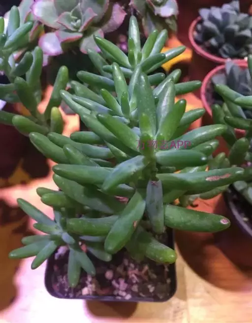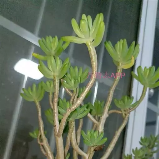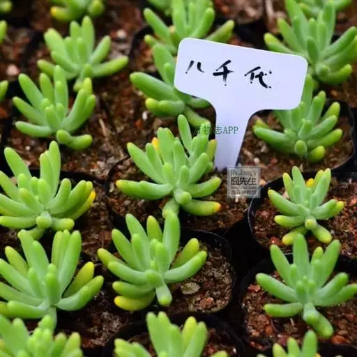 区别二、刚发出的小株也能明显区别!乙女心小株是典型的叶片头大尾小,而且颜色偏青!八千代就算是刚出的小株也是木质杆。而且叶片是头小尾大,颜色偏黄的。